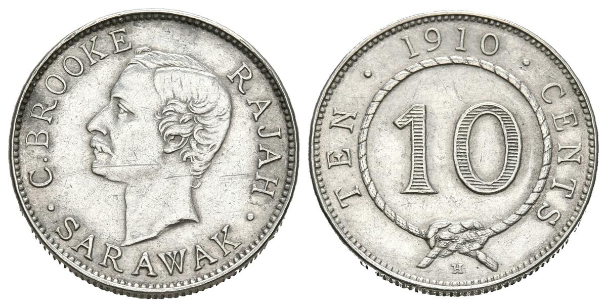 SARAWAK (State of Malaysia). 10 Cents (Ar. 2.68g / 18mm). 1910. Birmingham H. British Protectorate. Rajah Charles Brooke. (Km # 9). Good Very Fine. Scratch on the obverse