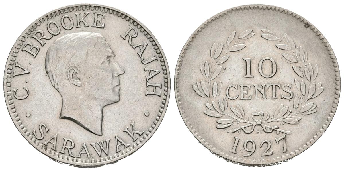 SARAWAK (State of Malaysia). 10 Cents (Ae-Ni. 5.78g / 26mm). 1927. Birmingham H. British Protectorate. Rajah Charles V. Brooke. (Km # 16). Good Very Fine.