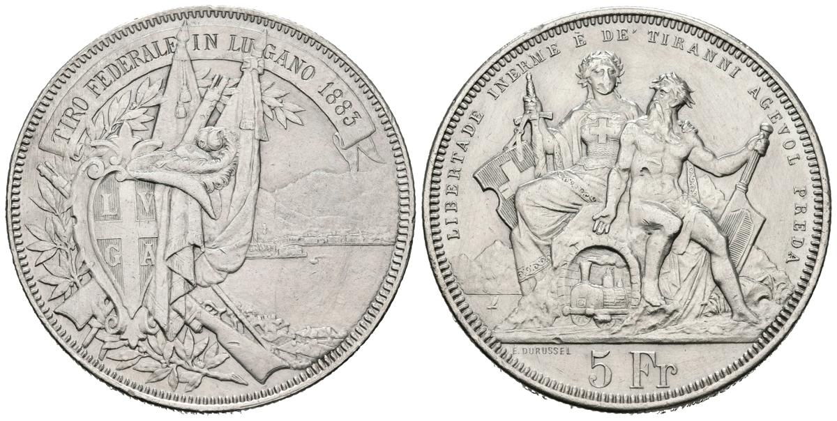 SWITZERLAND (Swiss Confederation). 5 Francs (Ar.24.99g / 37mm). 1883. Lugano. (Km # S16). Good Very Fine. Scratch .