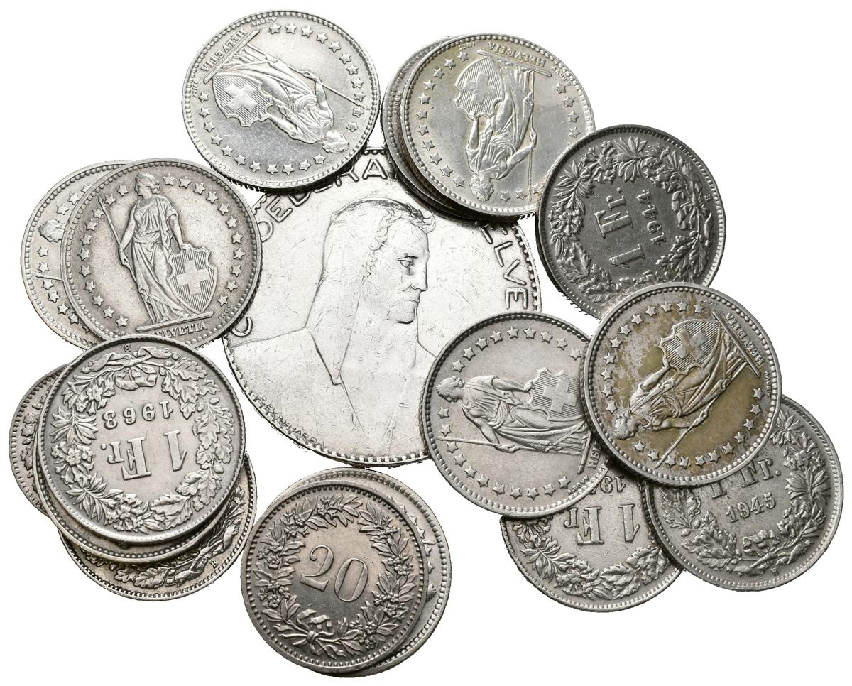 SWITZERLAND. Nice set of 17 coins, most of them 1 Franc in silver, with dates between 1922 and 1982. The set includes a 5 Franc piece from 1922. Different states of preservation. TO EXAMINE.