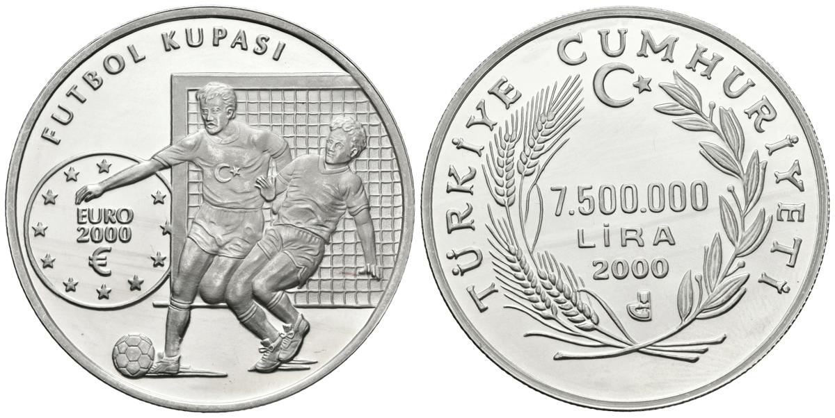 TURKEY. 7,500,000 Lira (Ar.31.37g / 39mm). 2000. Darphane. Euro 2000. Uncirculated.