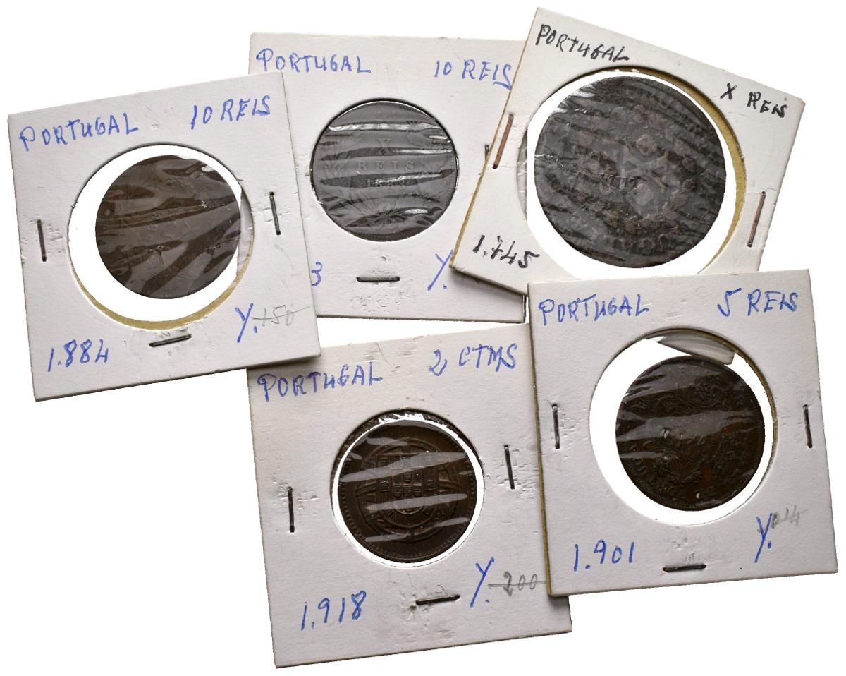 English PORTUGAL. Lot of 5 coins from between the 18th and 20th centuries. 10 Reis from 1745 stand out. Different states of conservation. TO EXAMINE.