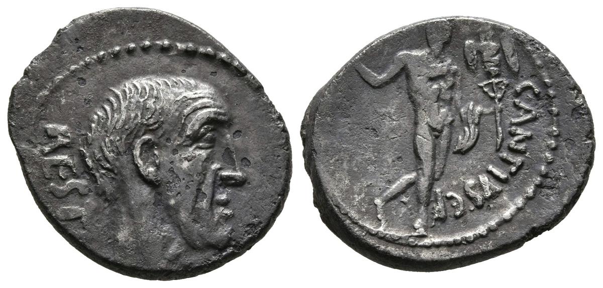 GENS ANTIA. Denarius. (Ar. 3.27g / 19mm). 47 BC Rome. (FFC 152; Crawford 455/1). Anv: Head of the trinuno Antius Restius on the right, behind legend: RESTIO. Rev: Hercules with mace and trophy on the right, lion skin on his left forearm, in front legend: C ANTIVS CF. Good Very Fine/ Very Fine. Dark patina.