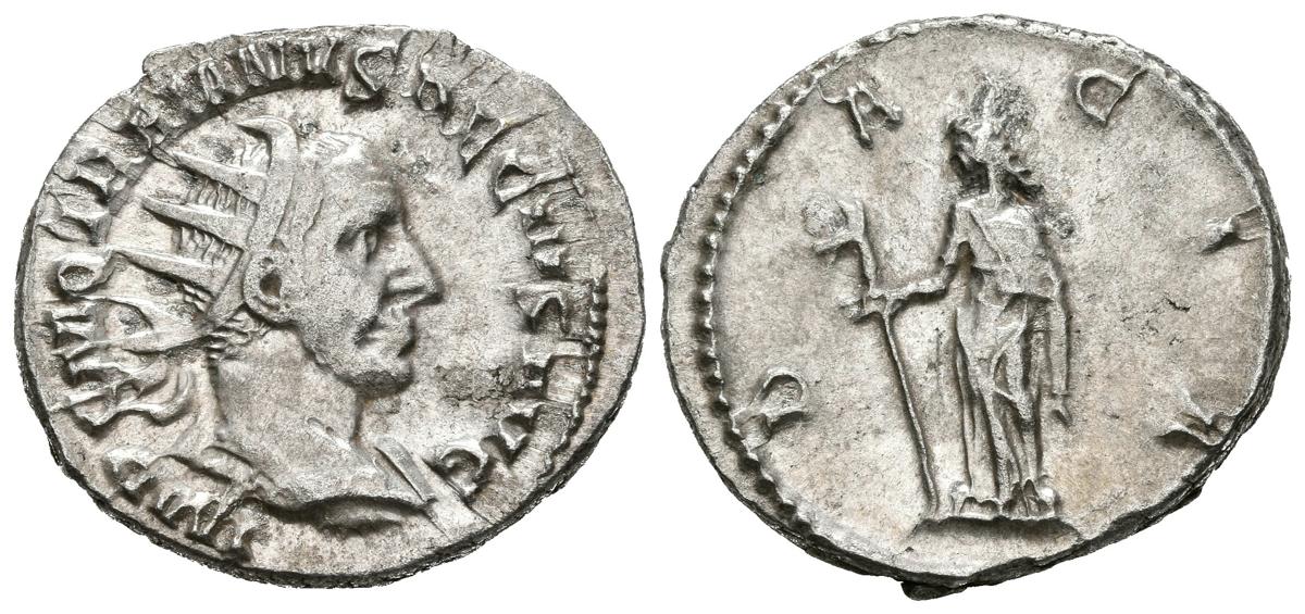 TRAJAN DECIUS. Antoninian. (Ar. 4.33g / 22mm). 250-251 AD Rome. (ICR 12b). Anv: Radiated and draped bust of Trajan Decius on the right, around legend: IMP CMQ TRAIANVS DECIVS AVG. Rev: Dacia standing standing on the left carrying a scepter with a wolf's head (Draco) at the end, around the legend: DACIA. Very Fine.