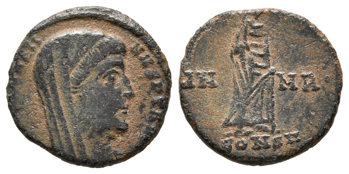 CONSTANTINE I Centennial. (Ae. 1.42g / 14mm). 347-348 AD Constantinople. (RIC 71a). Anv: Veiled head of Constantine I on the right, around legend: DV CONSTANTINVS PT AVGG. Rev: Constantino I standing on the right, between VN-MR, in exergue: CONSA. Almost Very Fine.