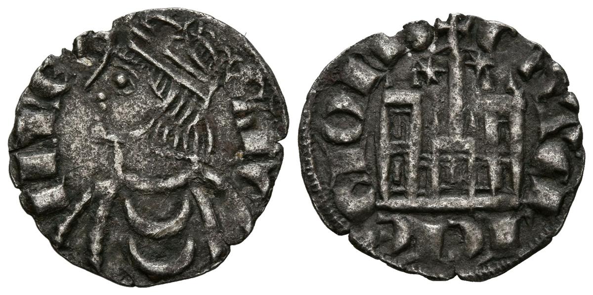 SANCHO IV (1284-1295). Cornado. (See 0.73g / 18mm). Lion. (FAB-299.4). Ob: Crowned bust of Sancho IV on the left, around legend: SANCII REX. Rev: Castle, two stars between the cetral tower and L in the door, around the legend: CASTELLE E LEGIONI. Very Fine.