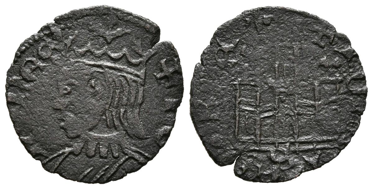 English JOHN II (1406-1454). Cornado. (See 0.67g / 16mm). Sevilla. (FAB-633). Ob: crowned bust of John II on the left, around legend: IOHANES. Rev: Castillo, below S, around legend: IOHANES REX. Very Fine.