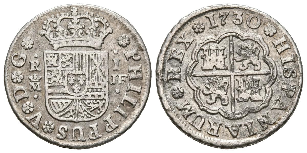 English FELIPE V (1700-1746). 1 Real (Ar.2.62g / 19mm). 1730. Madrid JF. (Cal-2019-442). Very Fine.