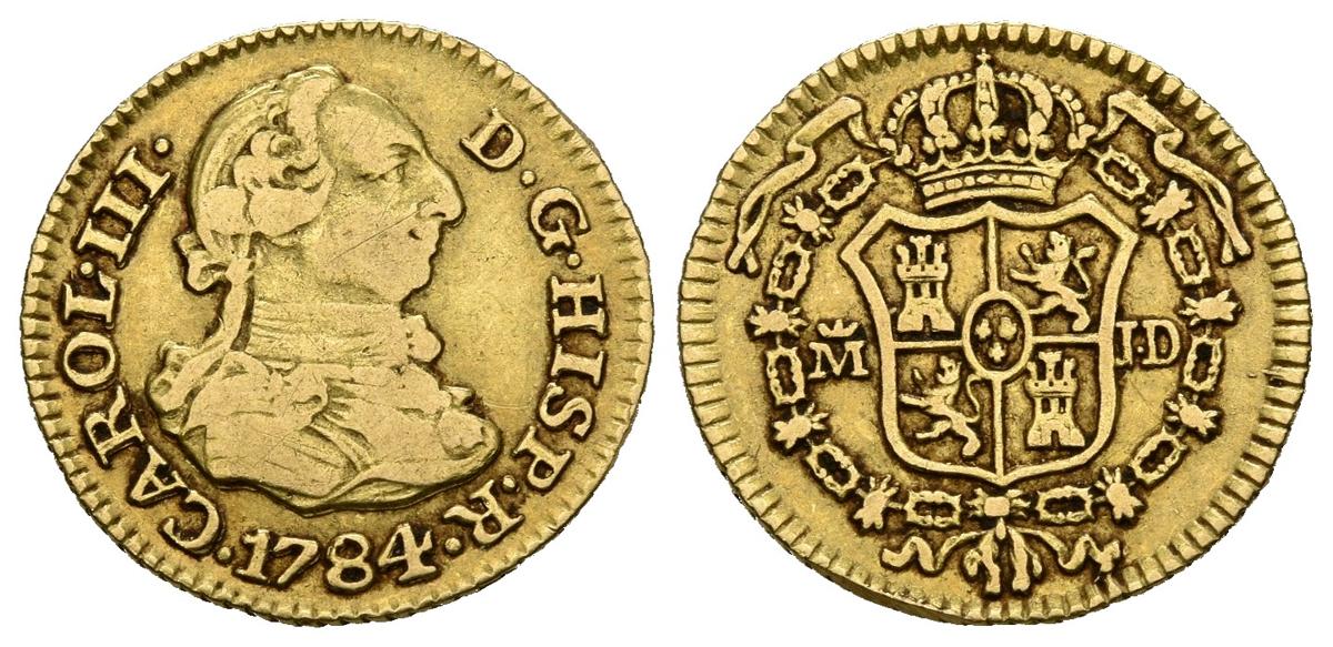 CARLOS III (1759-1788). 1/2 Escudo. (Au 1.77g / 15mm). 1784. Madrid JD. (Cal-2019-1277). Good Fine.