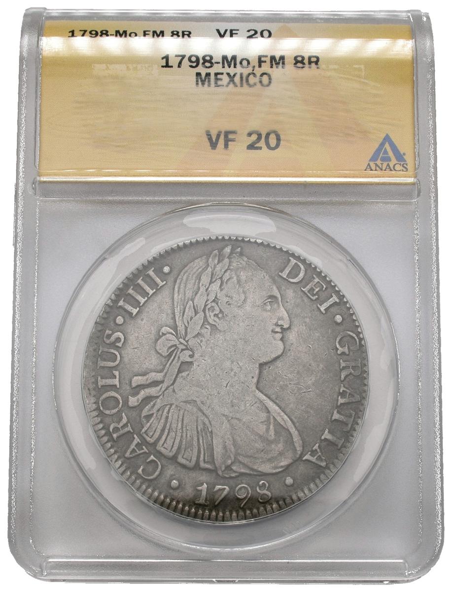 CARLOS IV (1788-1808). 8 Reales (Ar. 27.00g / 38mm) *. 1798. Mexico FM. (Cal-2019-961). VF 20. Encapsulated by ANACS. * Theoretical weight and measurement.