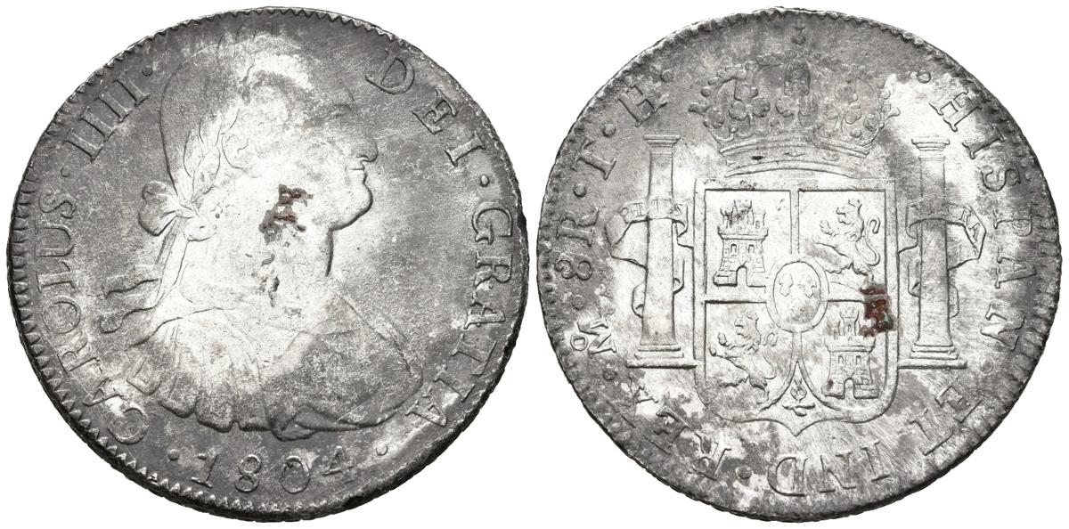 CARLOS IV (1788-1808). 8 Reales (Ar. 25.50g / 39mm). 1804. Mexico TH. (Cal-2019-980). Very Fine. Oxidations Partially cleaned.