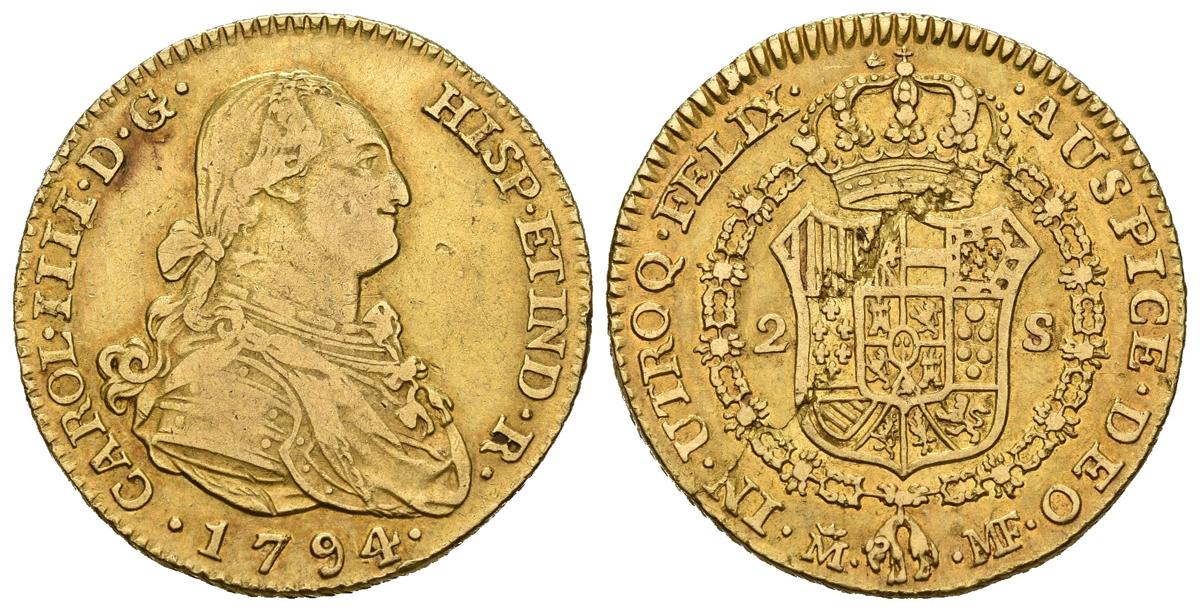 CARLOS IV (1788-1808). 2 Escudos (Au. 6.73g / 23mm). 1794. Madrid MF. (Cal-2019-1282). Very Fine.