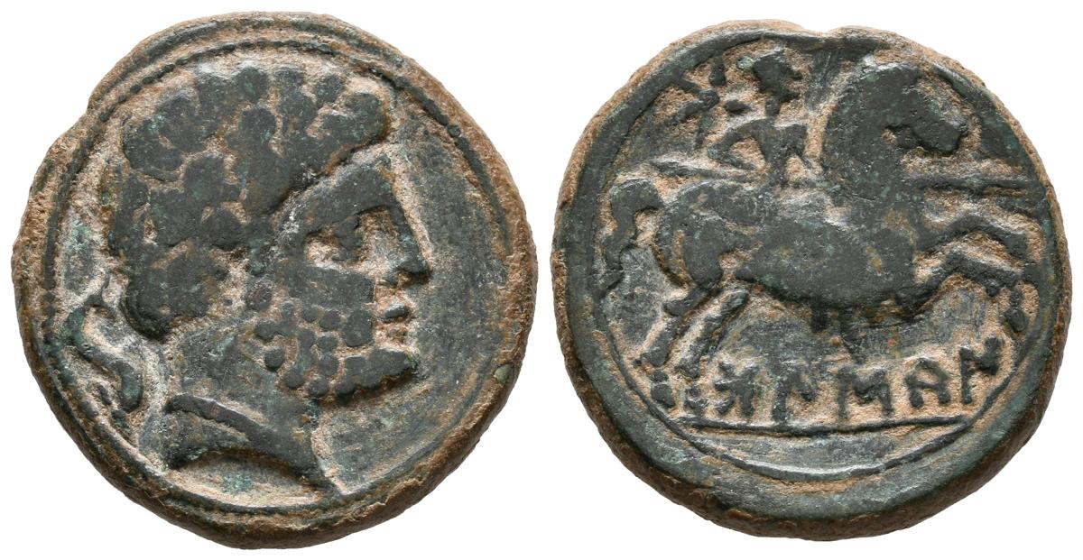 BOLSCAN (Huesca). As. (Ae. 9.05g / 24mm). 180-20 BC (FAB-1918). Anv: Male head to right, behind dolphin. Rev: Rider with spear to the right, above star, below Iberian legend: BoLSCaN. Very Fine.