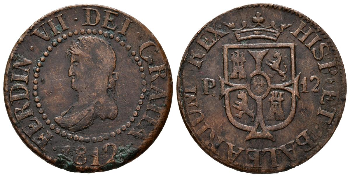 English FERNANDO VII (1808-1833). 12 Diners. (Ae. 6.03g / 25mm). 1812. Mallorca. (Cal-2019-24?). Possible false of the time. Almost Very Fine.