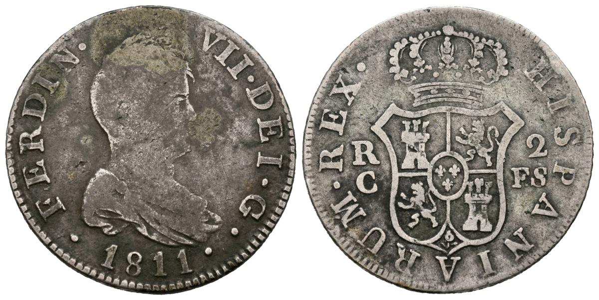 FERNANDO VII (1808-1833). 2 Reales (Ar. 5.63g / 26mm). 1811. Catalonia SF. (Cal-2019-764). Draped bust. Fine. Limited.