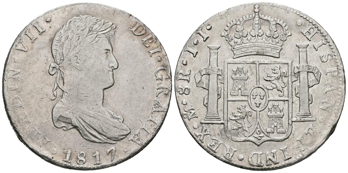 FERNANDO VII (1808-1833). 8 Reales. (Ar. 24.79g / 38mm). 1817. Mexico. JJ. (Cal-2019-1332). Laureate bust. Good Very Fine . Scratch . Limited.