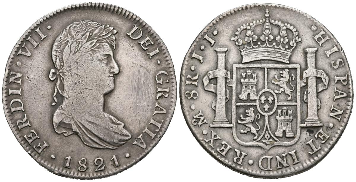 English FERNANDO VII (1808-1833). 8 Reales. (Ar. 26.78g / 39mm). 1821. Mexico JJ. (Cal-2019-1337). Very Fine. Nice tone.