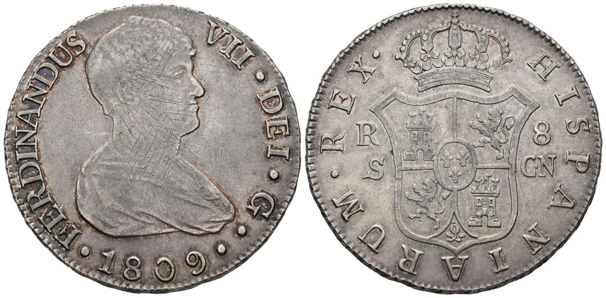 FERNANDO VII (1808-1833). 8 Reales (Ar. 26.77g / 40mm). 1809. Sevilla CN. Naked bust. (Cal-2019-1412). Very Fine.