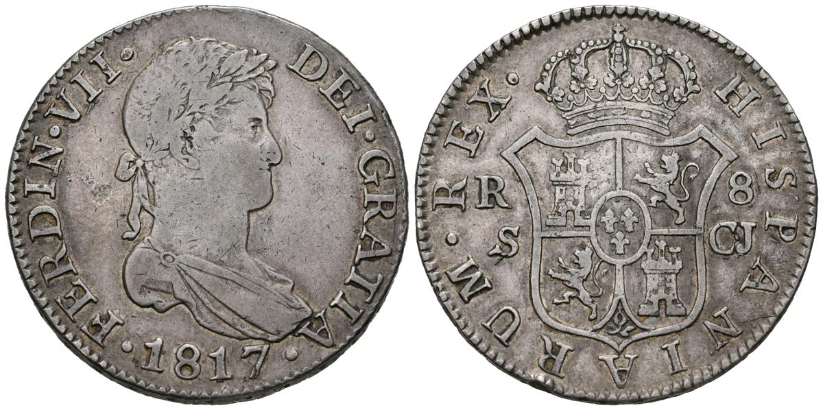 FERNANDO VII (1808-1833). 8 Reales (Ar. 26.74g / 39mm). 1817. Sevilla CJ. Laureate bust. (Cal-2019-1418). Almost Very Fine.