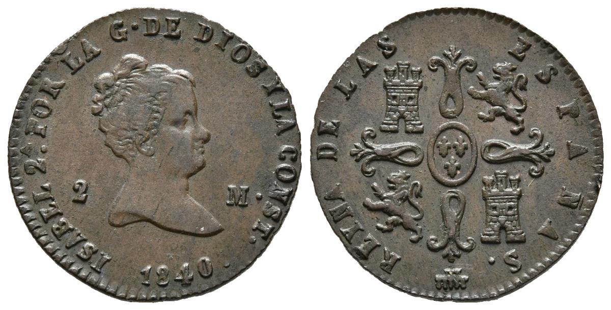 ISABEL II (1833-1868). 2 Maravedís. (Ae. 1.96g / 19mm). 1840. Segovia. (Cal-2019-51). Extremely Fine.
