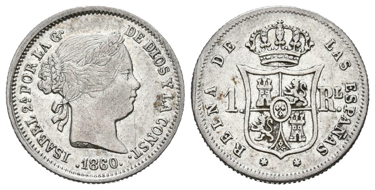 English ISABEL II (1833-1868). 1 Real. (Ar. 1.31g / 15mm). 1860. Madrid. (Cal-2019-309). Good Very Fine
