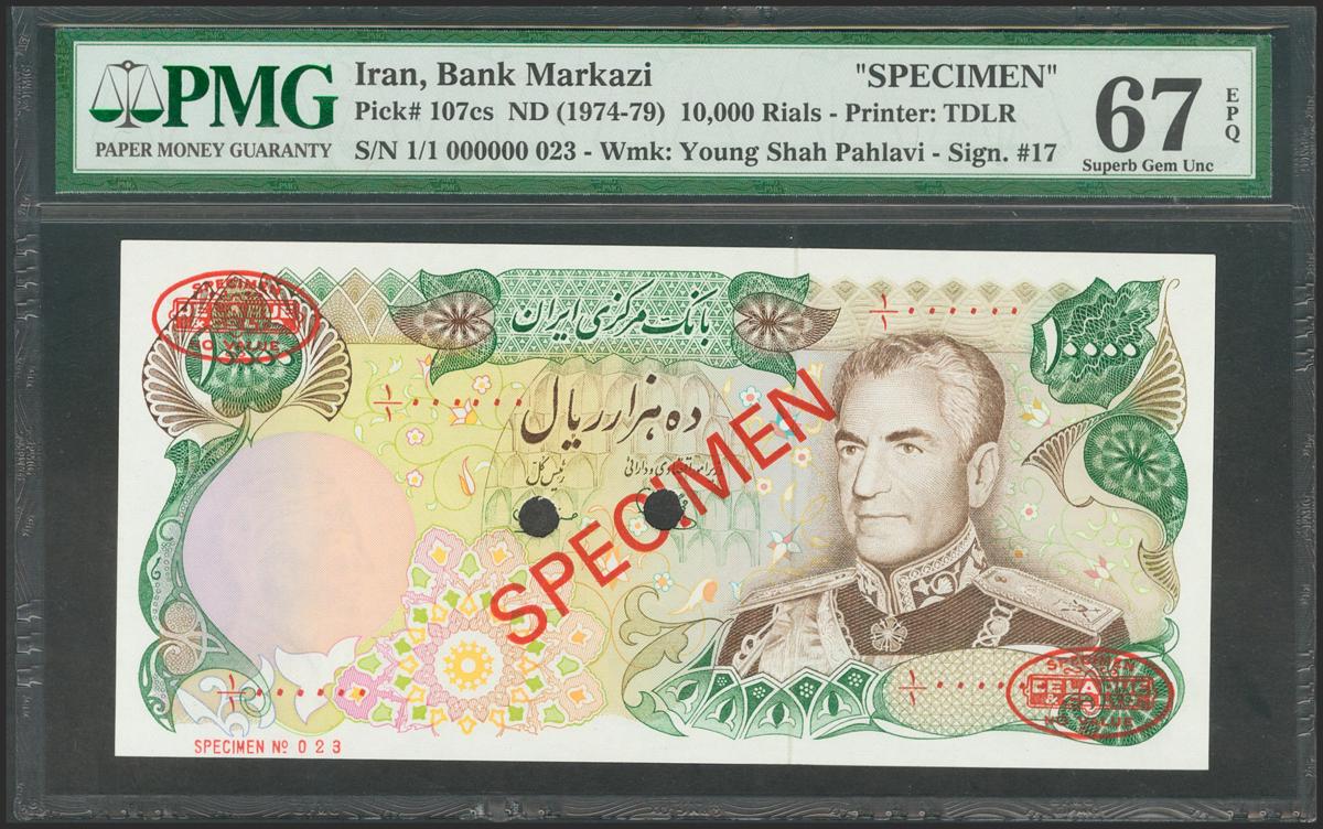 IRAN. 10000 Rials. 1974. Specimen. (Pick: 107cs). PMG67EPQ.
