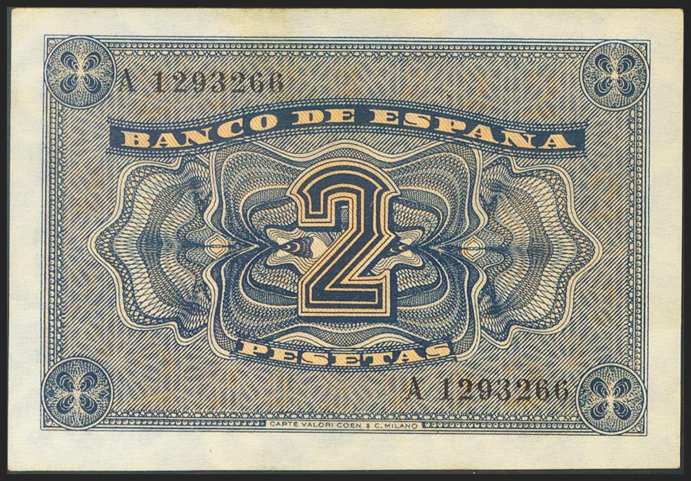 2 Pesetas. October 12, 1937. Series A. (Edifil 2021: 426). It preserves a good part of the original size. Extremely Fine.