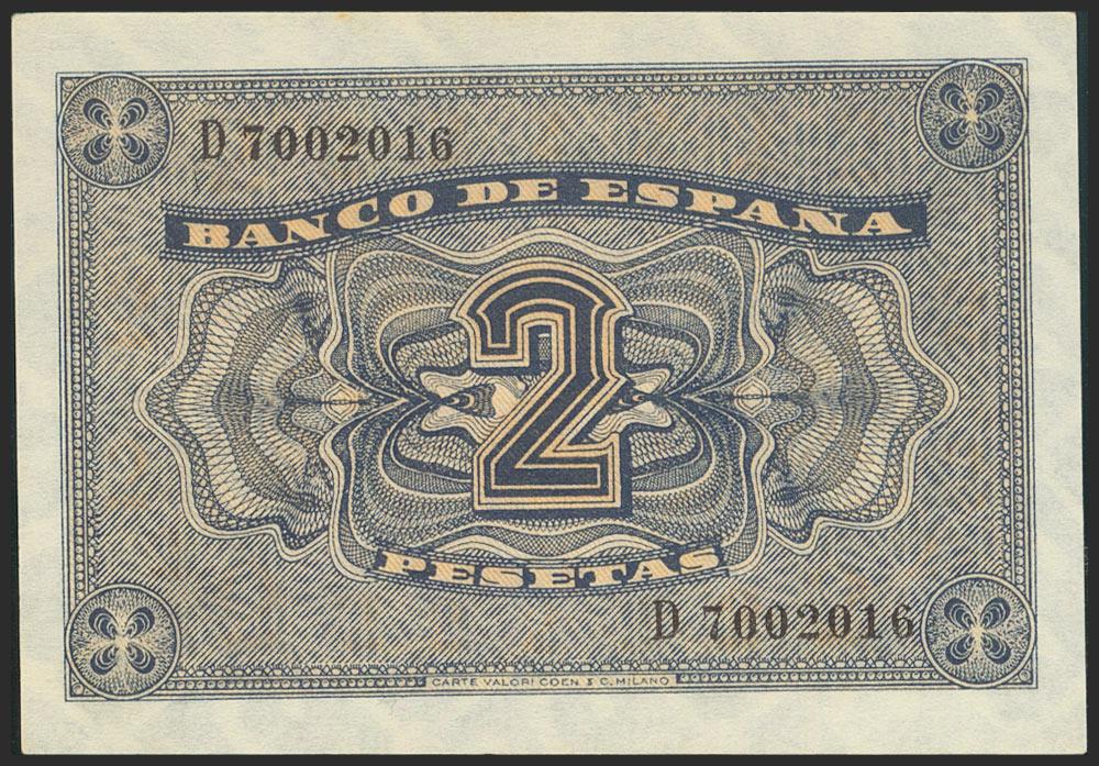 2 Pesetas. April 30, 1938. Series D. (Edifil 2021: 429a). Original sizing. Uncirculated.