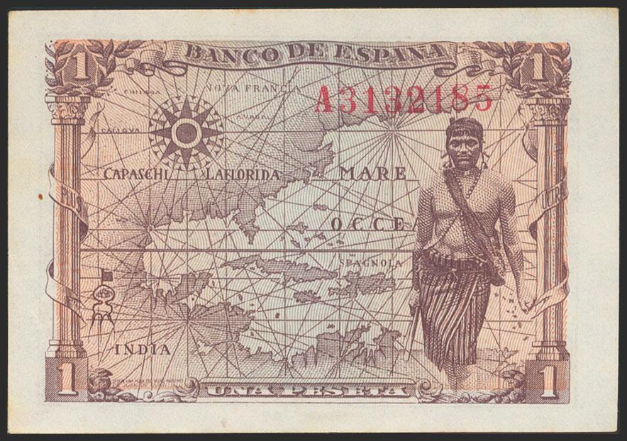 1 peseta. June 15, 1945. Series A. (Edifil 2021: 448a). It retains much of the original size. Good Extremely Fine.