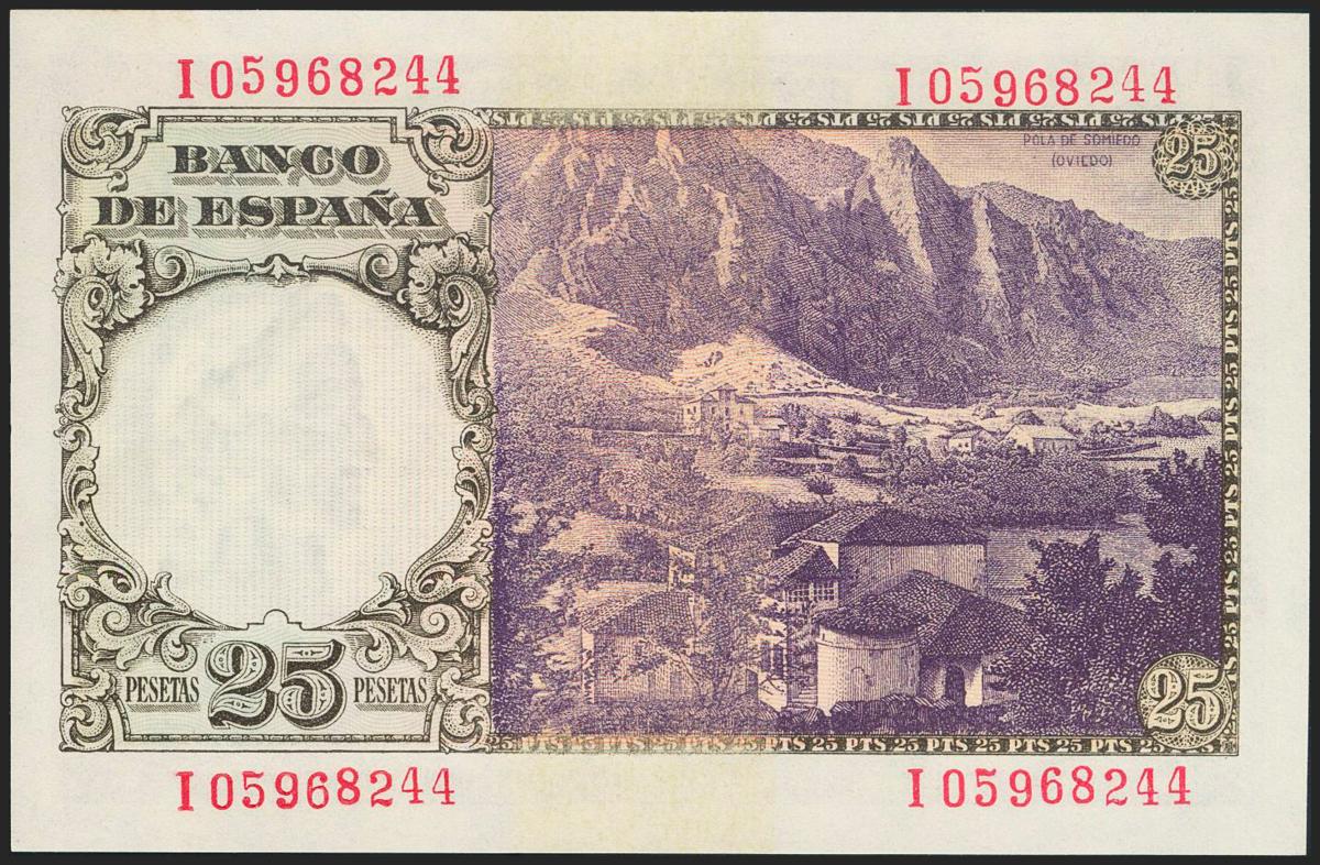 25 Pesetas. February 19, 1946. Series I. (Edifil 2017: 450a). Original sizing. Almost Uncirculated.