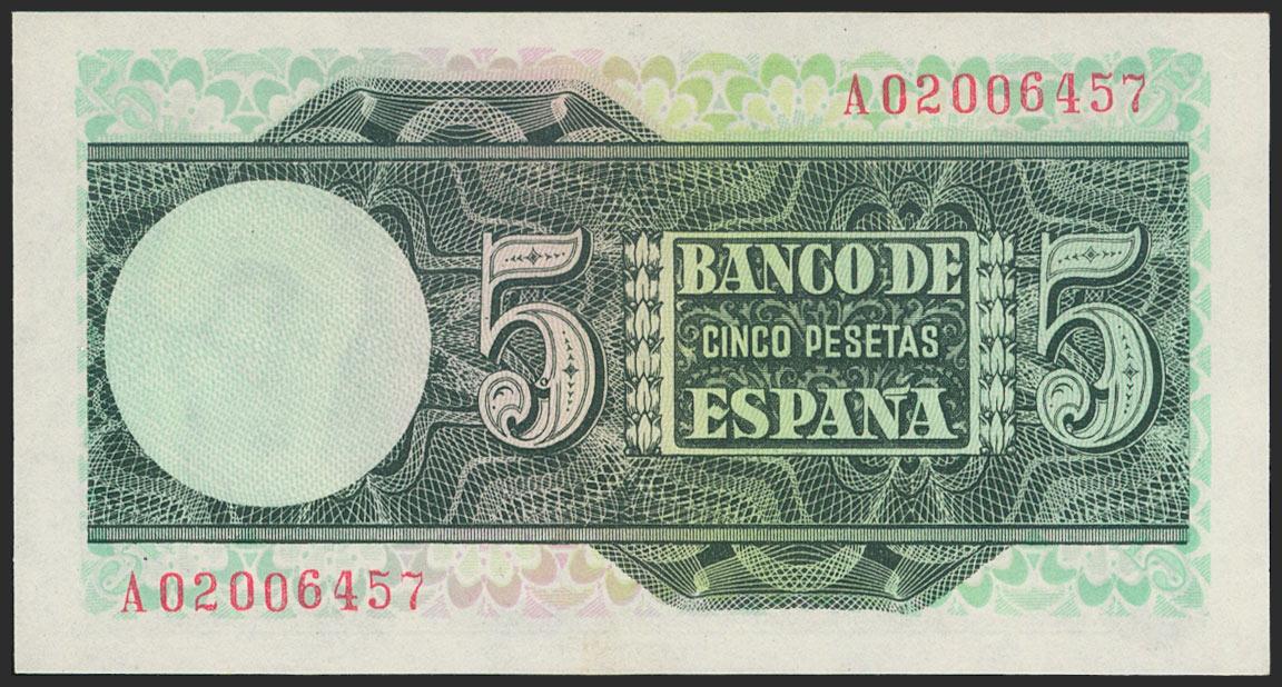 5 Pesetas. March 15, 1948. Series A. (Edifil 2021: 455a). Original sizing. Uncirculated.