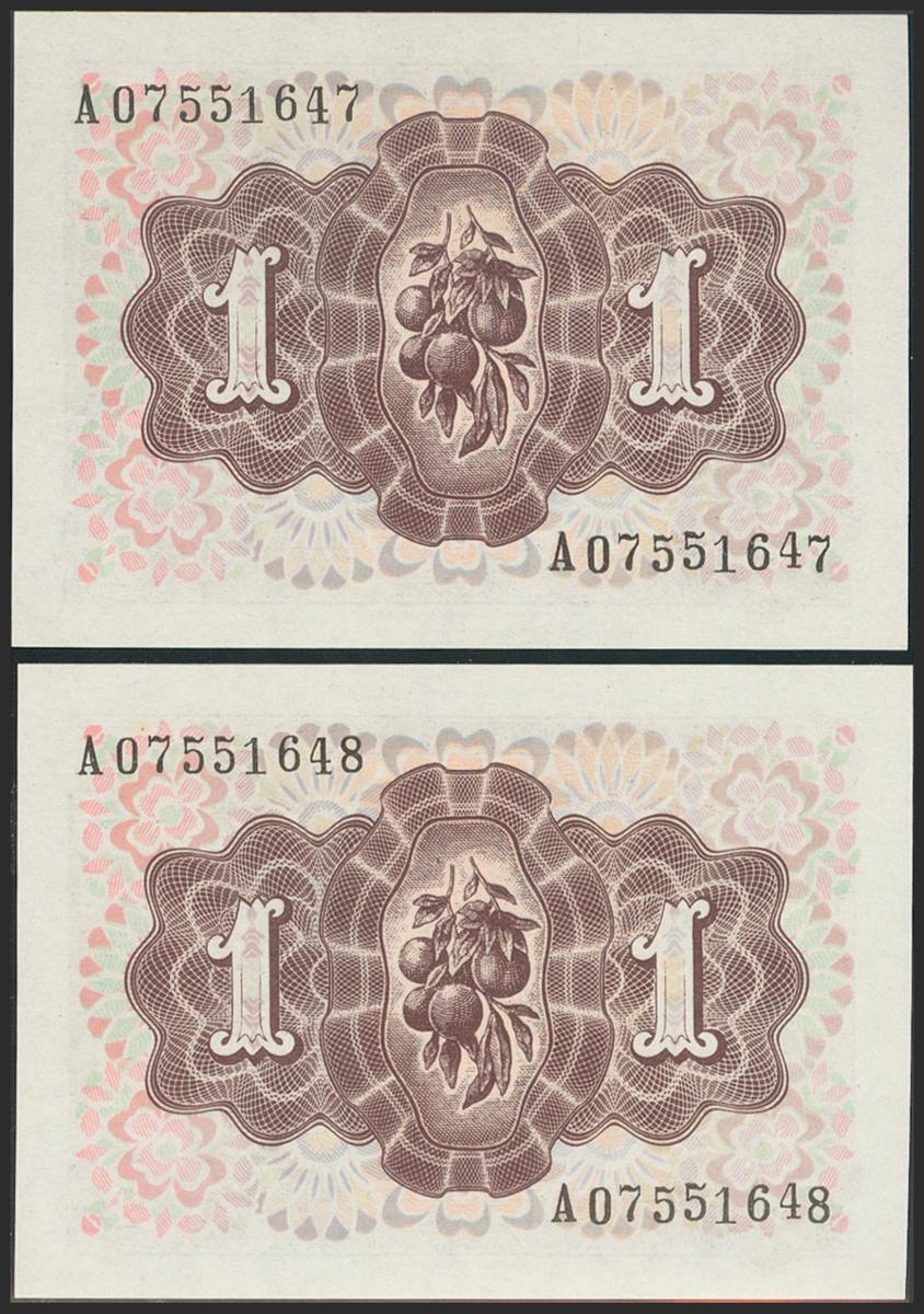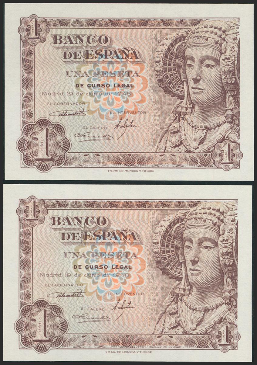 English 1 peseta. June 19, 1948. Correlative couple. Series A. (Edifil 2021: 457a). Original sizing. Uncirculated.