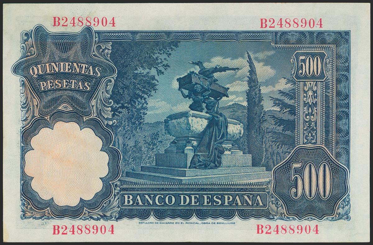 500 pesetas. November 15, 1951. Series B. (Edifil 2021: 460a). It presents part of the original sizing. Good Extremely Fine.