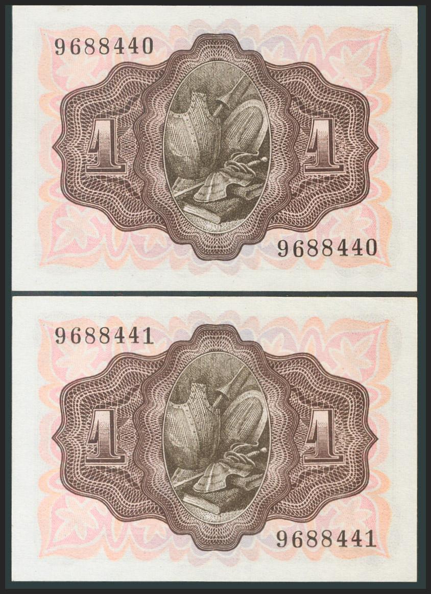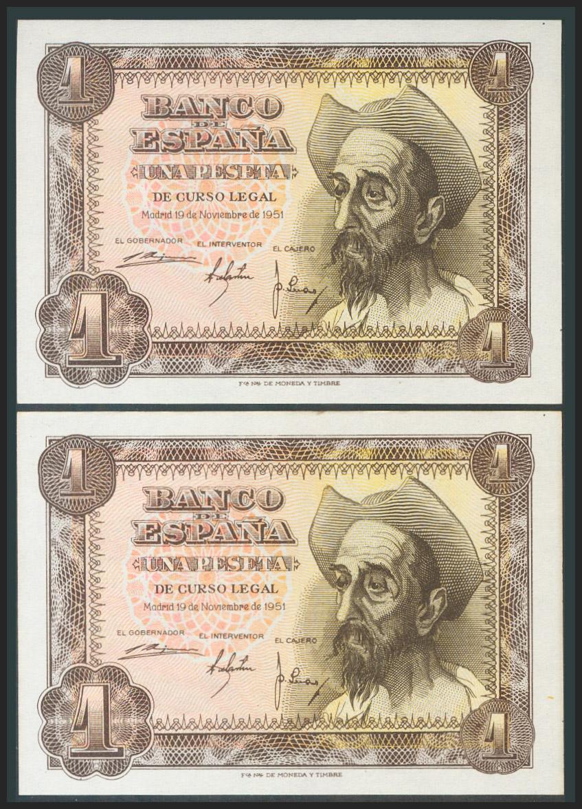 1 peseta. November 19, 1951. Correlative couple. No serie. (Edifil 2021: 461). Original sizing. Uncirculated.