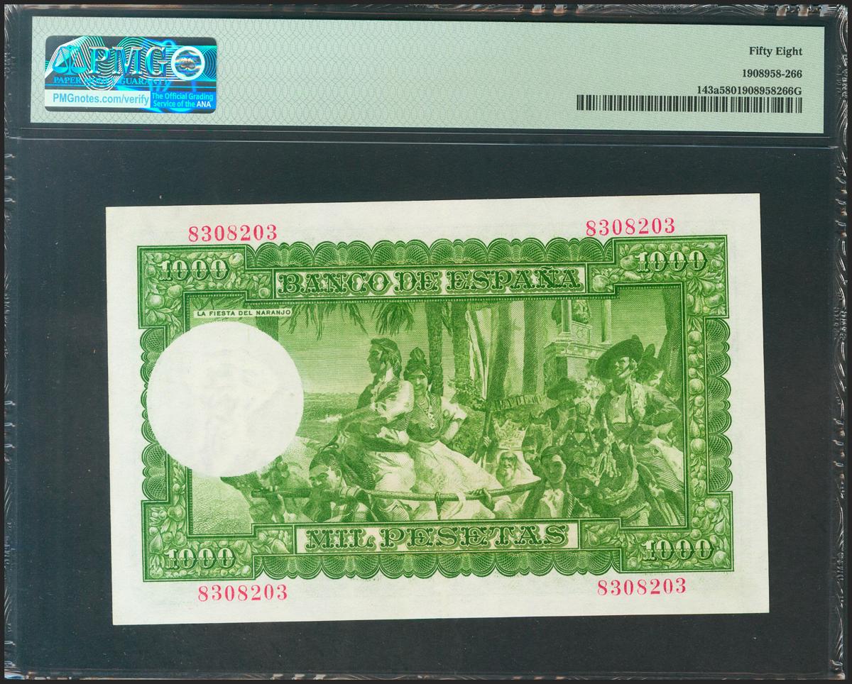1000 Pesetas. December 31, 1951. Without series. (Edifil 2021: 463, Pick: 143a). EBC ++. PMG58 package.