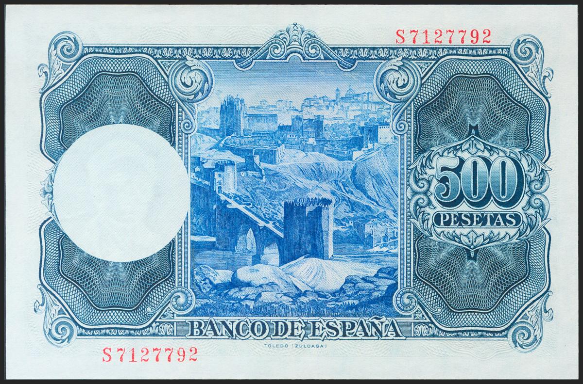 500 pesetas. July 22, 1954. Series S. (Edifil 2021: 468b). It keeps all the original sizing. Almost Uncirculated.