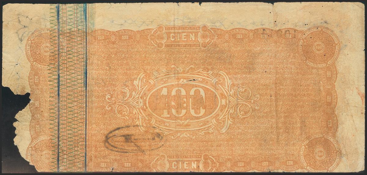 100 pesetas. April 1, 1880. FALSE OF TIME. No serie. (Edifil 2021: 278F). Very rare and attractive ticket. Good Fine.