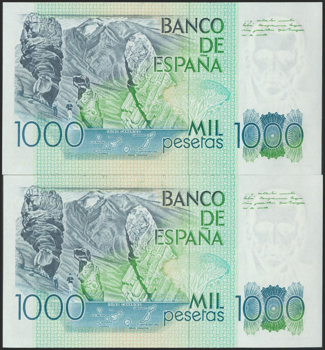 1000 Pesetas. October 23, 1979. Correlative couple. Series 9A. (Edifil 2017: 477b). Unusual Uncirculated.
