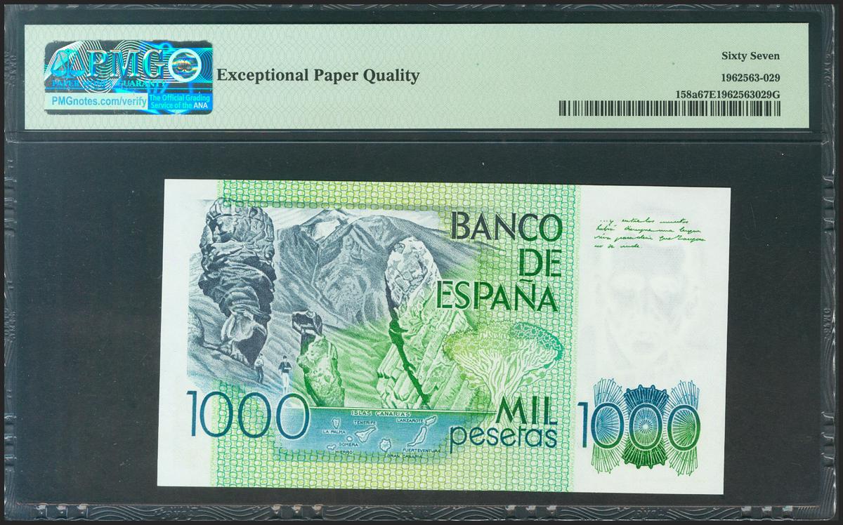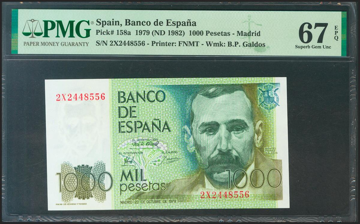 1000 Pesetas. October 23, 1979. 2X Series. (Edifil 2021: 477a). Original sizing. Uncirculated. PMG67EPQ package.