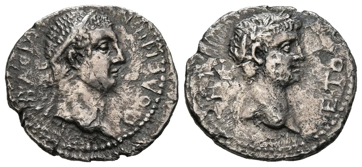 POLEMO II and NERON. Drachm. (Ar. 2.63g / 18mm). 57-58 AD Nicomedia. (Seaby 5425). Anv: Diademic head of Polemo II on the right, around Greek legend. Rev: Diademic head of Nero on the right, around Greek legend. Very Fine. Scarce Cleaned oxidations.