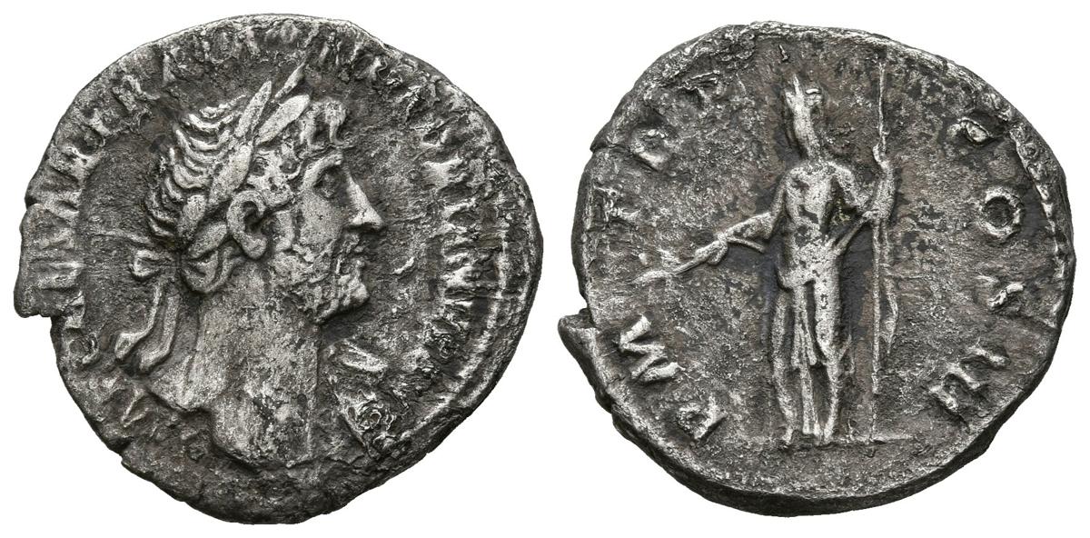 HADRIAN. Denarius. (Ar. 2.72g / 18mm). 119-120 AD Rome. (RIC 225). Anv: Laureate bust of Hadrian on the right, draped over the left shoulder. Rev: Pax standing to left carrying branch and scepter, around legend: PM TR P COS III. Almost Very Fine.