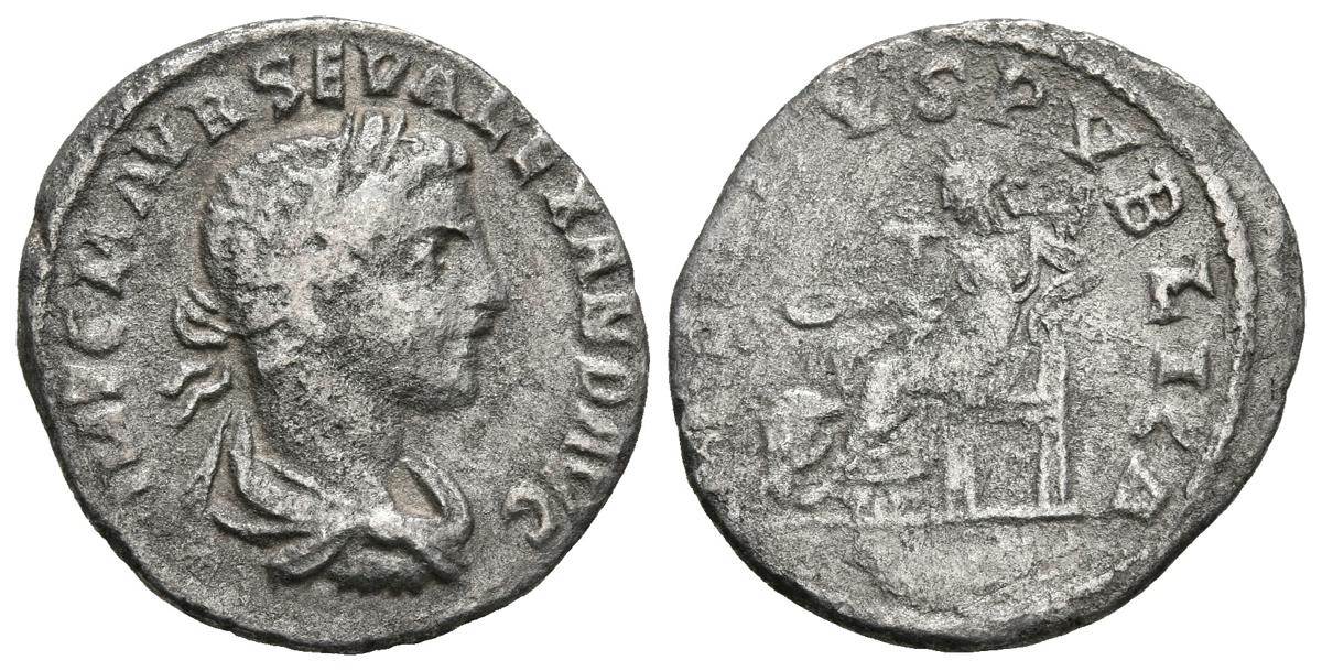 SEVERUS ALEXANDER. Denarius. (Ar. 2.25g / 19mm). 222 AD Rome. (RIC 178). Anv: Laureate and draped bust of Alejandro Severo on the right, around the legend: IMP CM AVR SEV ALEXAND AVG. Rev: Salus sitting on the left feeding a snake on a patera altar: SALVS PVBLICA. Almost Very Fine.