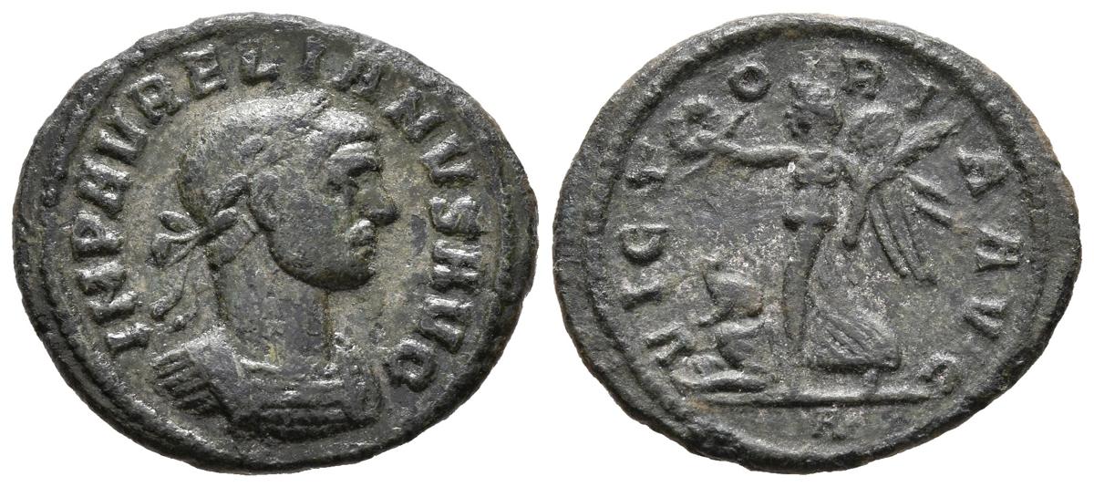 English AURELIAN. Denarius. (Ae. 2.78g / 21mm). 275 AD Rome. (RIC 73). Anv: Laureate bust with Aureliano cuirass on the right, around the legend: IMP AVRELIANVS AVG. Rev: Victoria advancing to the left wearing a laurel wreath, captive in front, around legend: VICTORIA AVG. Very Fine.