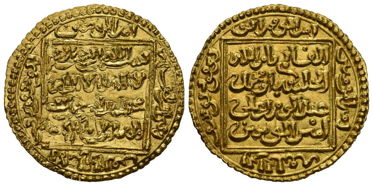 PILLOWS, Abu Hafs Omar al-Murtado. 1/2 Dinar. (Au 2.32g / 22mm). 646-665H. Without mint. (Vives 2083; Hazard 534). Good Extremely Fine. Double minted on the obverse. Remnants of original shine.