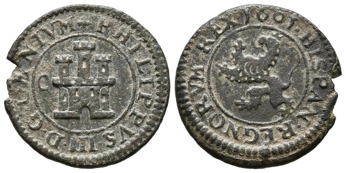 FELIPE III (1598-1621). 2 Maravedís. (Ae. 2.88g / 20mm). 1601. Segovia C. (Cal-2019-182). Very Fine. Missing flange.
