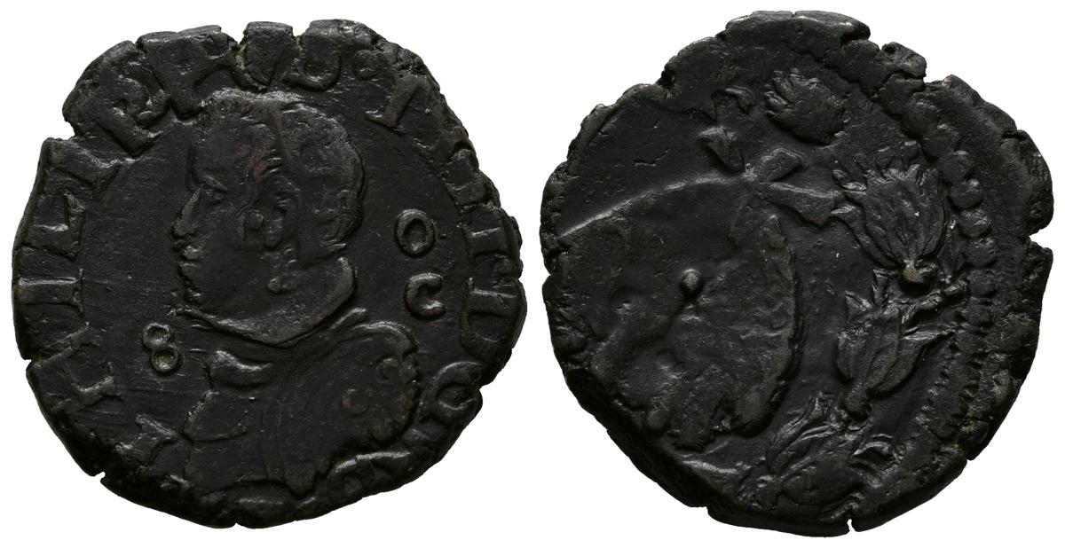 FELIPE IV (1621-1665). 1 Tornesi (Ae. 5.18g / 23mm). Date not visible. Naples. (MIR-Type 268). Almost Very Fine