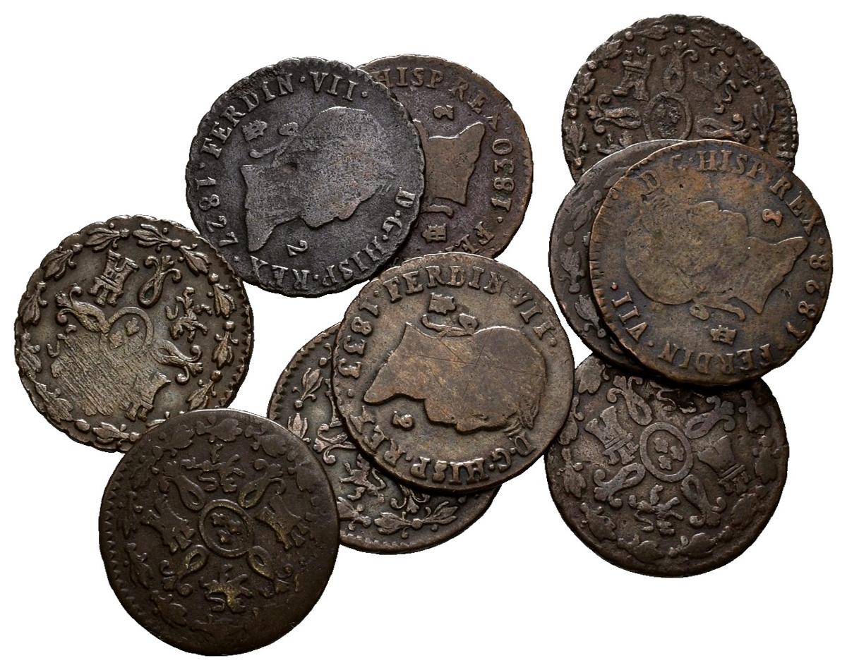 English FERNANDO VII (1808-1833). Nice set composed of 10 coins of 2 Maravedís from the Segovia mint from different years, some repeated. TO EXAMINE.