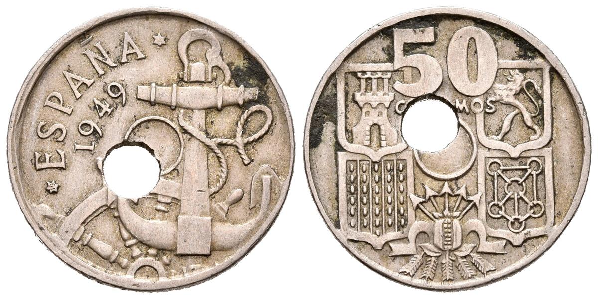 English SPANISH STATE (1936-1975). 50 Cents. (CuNi. 4.04g / 21mm). 1949 * 19-XX. Madrid. (Cal-2019-Type 9). Very Fine. Second star not visible. Displaced hole.