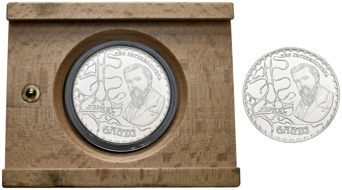 English JUAN CARLOS I (1975-2014). 10 Euros (Ar. 27.00g / 40mm). 2002. El Capricho. Gaudí. (Km # 1083). PROOF. Includes original box and certificate of authenticity. Print run of 25,000 copies.