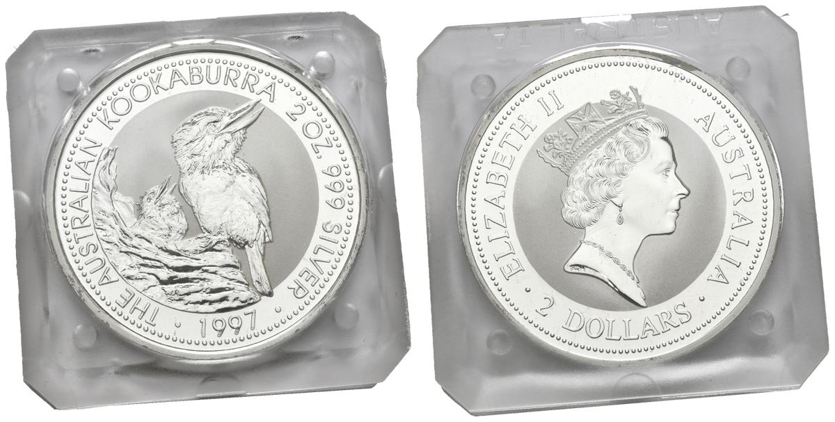English AUSTRALIA. 2 Dollars (Ar. 62.64g / 50mm). 1997. Kookaburra. 0.999 thousandth silver. (Km # 319). PROOF. Includes original capsule.